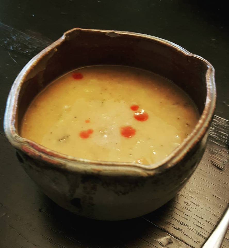 Combine onion garlic, and seasonings with a bit of water or stock and “saute” for a couple of minutes until they begin to soften. Add beans, potatoes, cauliflouwer, roasted peppers and vegetable stock. Add water or more stock until there is enough liquid for the beans to cook in (this is extra important if using dry beans). Cook until everything is very soft. Add nutritional yeast. Use an immersion blender to blend until creamy. I also removed 3-4 cups of the beans, potatoes and cauliflower and put them in my high-powered blender for a couple of minutes to activate the starches and make a more vaguely cheese-like experience (side bar: heads up that this is not going to taste like cheese. I hate it when vegan recipes tell you things will taste “just like cheese.” It turns out potatoes and cauliflower don’t taste like cheese, but that doesn’t mean they aren’t delicious. OK? OK. Sorry for interrupting.).