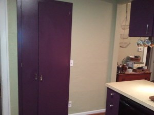 But honestly, I never liked that orange. So when I heard there was a sale and a lovely friend offered to watch my kids while I painted today, I jumped at the chance to find a calmer color to allow the purple cabinets to really stand out. It turns out that sometimes letting certain things be quiet so that when something is loud people know it’s worth some attention can be a good thing. Who knew? (I know. Lots of people. It’s a thing.)