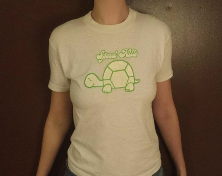Here’s the thing. I don’t remember much about the man himself. But even now I remember very clearly what I was wearing when it happened: my pink t-shirt with a glow-in-the-dark turtle on it that says Speed Kills. Crew neck and fitted but not too tight. Never too tight. Jeans. Sneakers. Cross necklace.